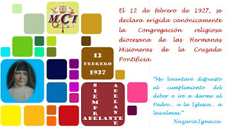 El 12 de febrer de 1927 es va declarar erigida canònicament la congregació religiosa diocesana de les Germanes Missioneres de la Creuada Pontifícia. La madre Nazaria Ignacia March feia realitat el seu somni, la seva promesa, i començava el camí de les MCI.