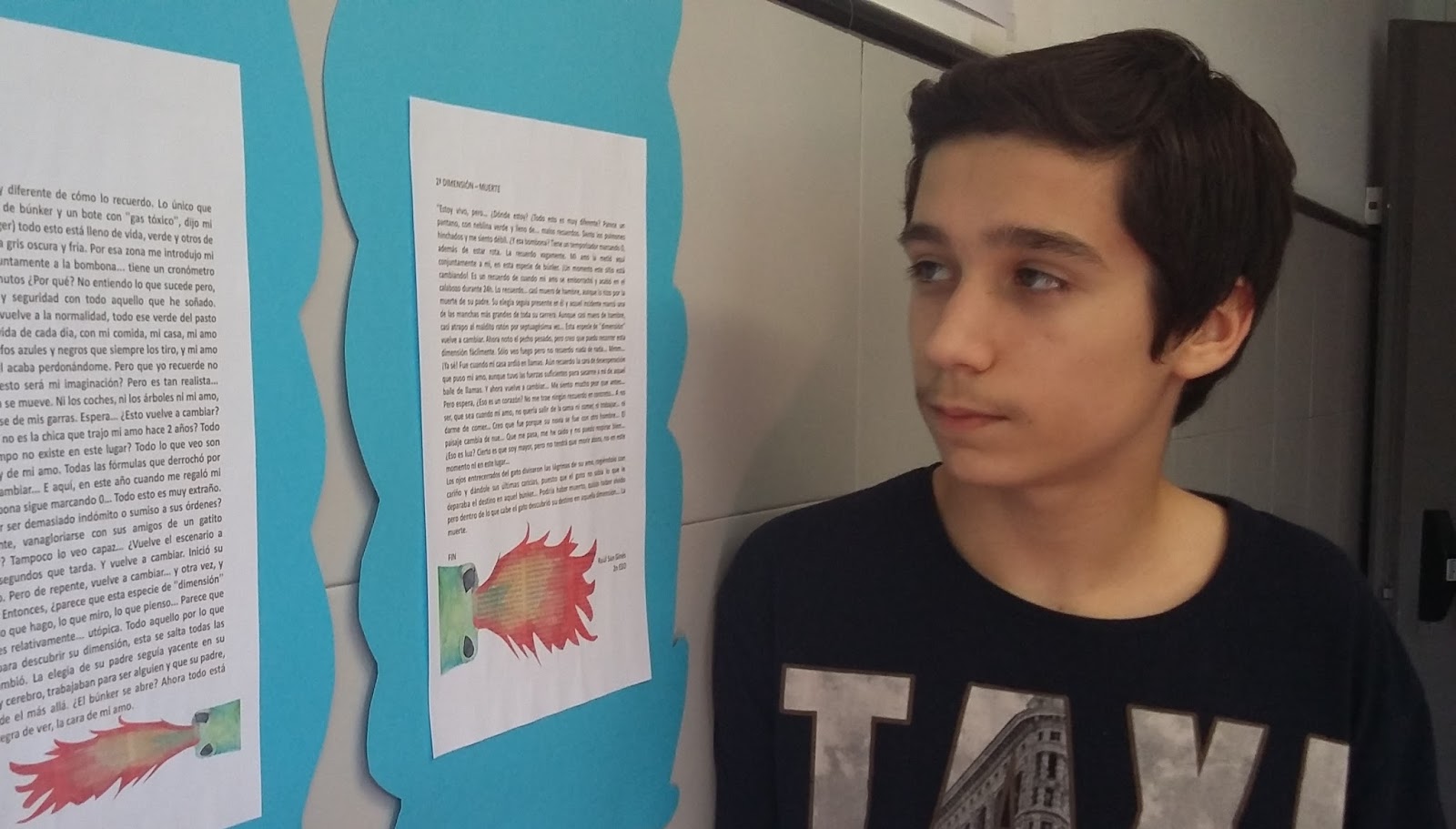 El Raúl, que ja havia rebut el premi literari de l’escola, va presentar un original text en que explicava una mateixa història des de dues dimensions. El vols llegir?