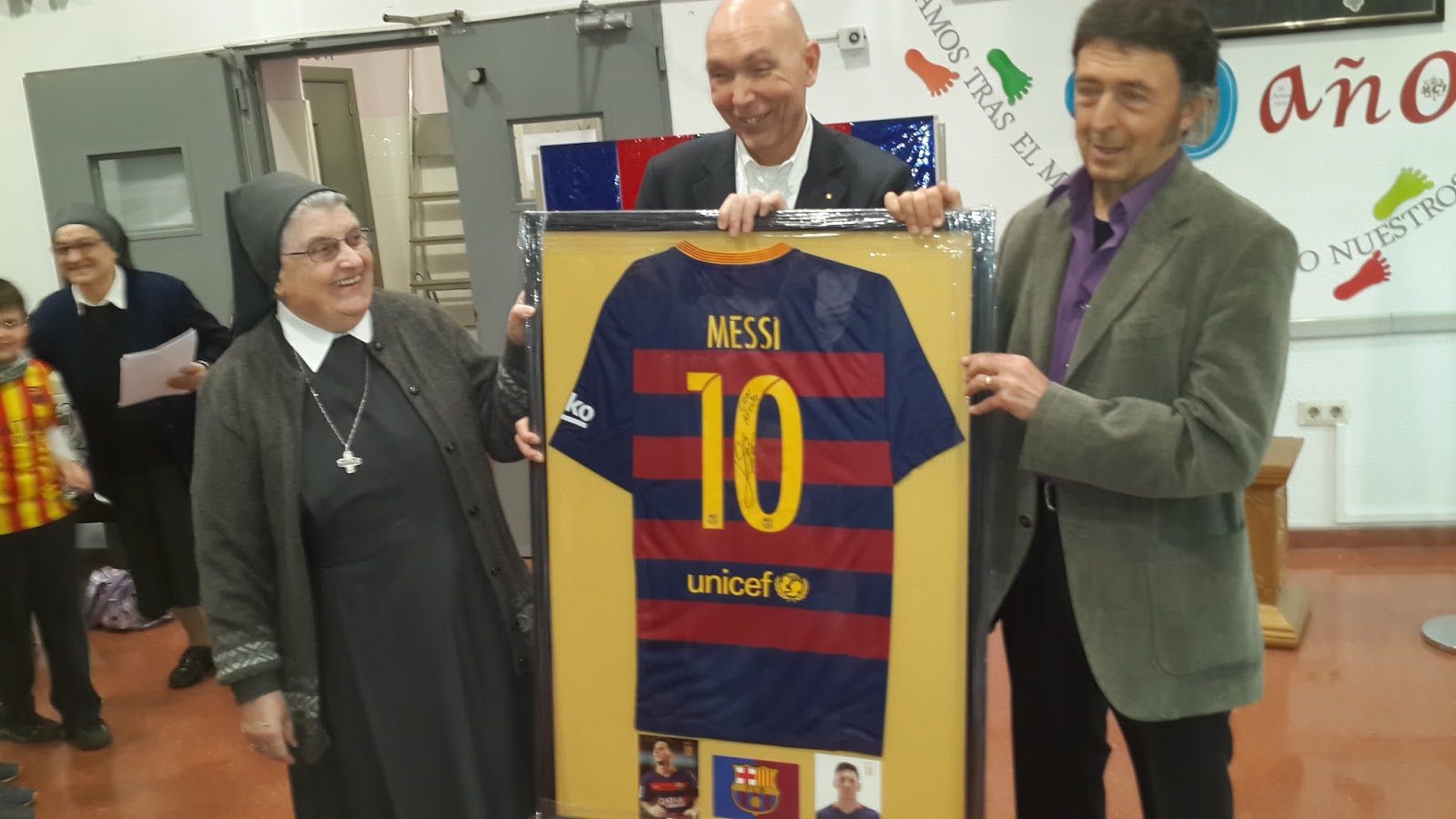 Aquesta tarda hem rebut amb il·lusió i gratitud l’entrega d’una samarreta del F.C.Barcelona signada, per Lionel Messi que ens ha facilitat l’agrupació IPA (International Police Association) amb l’objectiu que les MCI puguin organitzar un sorteig i destinar-ne els beneficis a les seves missions i accions socials.