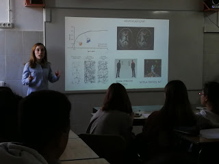 Avui els alumnes de 3r d’ESO han estat molt atents a les explicacions de Noemí Lamonja, ex alumna de l’escola i investigadora de la UB, sobre el sistema nerviós.